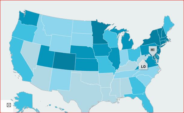 KY, MS, LA, AL, OK, AK, AZ, and TX round out the Idiot Nine Red for TURNIP with only NV rounding out the Bottom Ten as the 1 Blue.